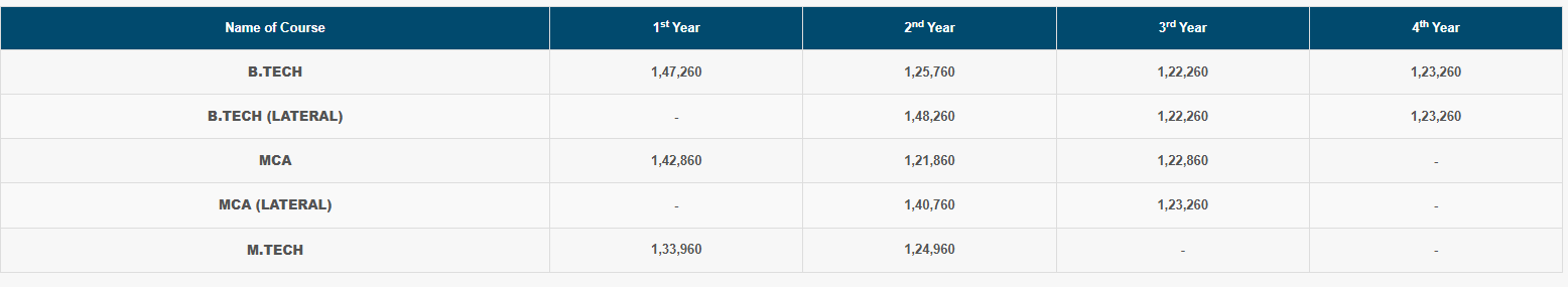 The fee structure varies from course to course, based on the course selected, the fee payable under the general category would be as follows: