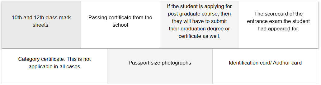 Students should carry all the documents required at the time of admission for submission in college.